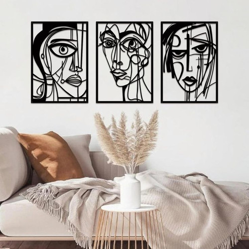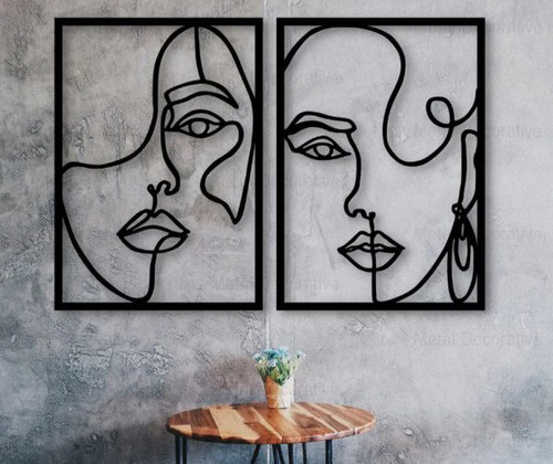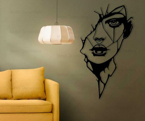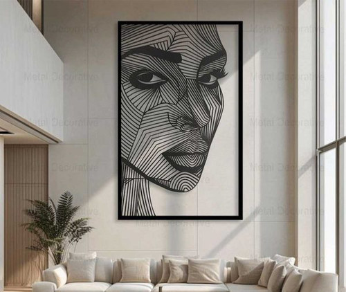 تابلوفلزی دو تکه چهره زن با پیچ و تاب موی سر T170