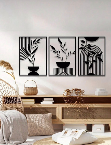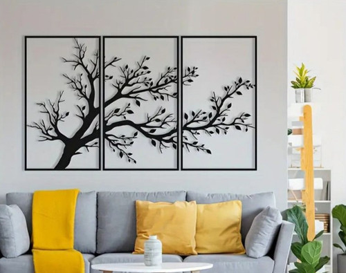 تابلو دکوراتیو فلزی طرح پر سه تکه T143