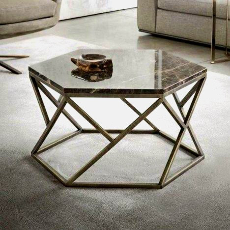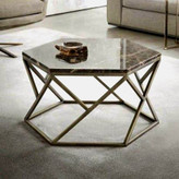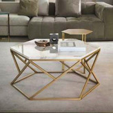 میز جلومبلی ششضلعی (هگزاگون) یک اثر هنری مدرن و نقطهی اوج دکوراسیون پذیرایی شماست. ترکیب جسورانه پایه فلزی طلایی هندسی با صفحهی سنگی (یا طرح مرمر) سفید براق، زیباییای خیرهکننده و حسی از تجمل (Luxury) را به فضای نشیمن شما میآورد. این میز نه تنها کاربردی است، بلکه به خودی خود یک المان دکوراتیو قدرتمند محسوب میشود