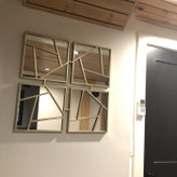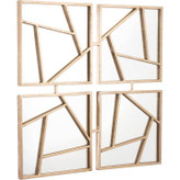ساختار هندسی (Geometric): این آینه از چهار مربع مجزا تشکیل شده که در کنار هم یک مربع بزرگتر را میسازند. خطوطی که روی سطح آینه کار شدهاند، نامتقارن و انتزاعی هستند که حس "مدرن بودن" و "پویایی" را به فضا میدهند.