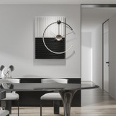 این ساعت با طراحی منحصر به فرد و مینیمالیستی خود، فراتر از یک وسیله برای نمایش زمان است؛ اثری هنری است که به دیوار شما جلوهای خاص میبخشد. ساختار دایرهای دوبل به همراه خطوط متقاطع ظریف، عمق و شخصیت بصری دلنشینی ایجاد میکند.