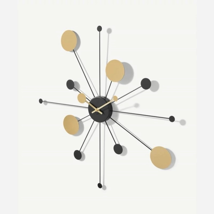 این ساعت با طراحی منحصر به فرد و مینیمالیستی خود، فراتر از یک وسیله برای نمایش زمان است؛ اثری هنری است که به دیوار شما جلوهای خاص میبخشد. ساختار دایرهای دوبل به همراه خطوط متقاطع ظریف، عمق و شخصیت بصری دلنشینی ایجاد میکند.