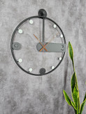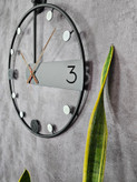 این ساعت با طراحی منحصر به فرد و مینیمالیستی خود، فراتر از یک وسیله برای نمایش زمان است؛ اثری هنری است که به دیوار شما جلوهای خاص میبخشد. ساختار دایرهای دوبل به همراه خطوط متقاطع ظریف، عمق و شخصیت بصری دلنشینی ایجاد میکند.