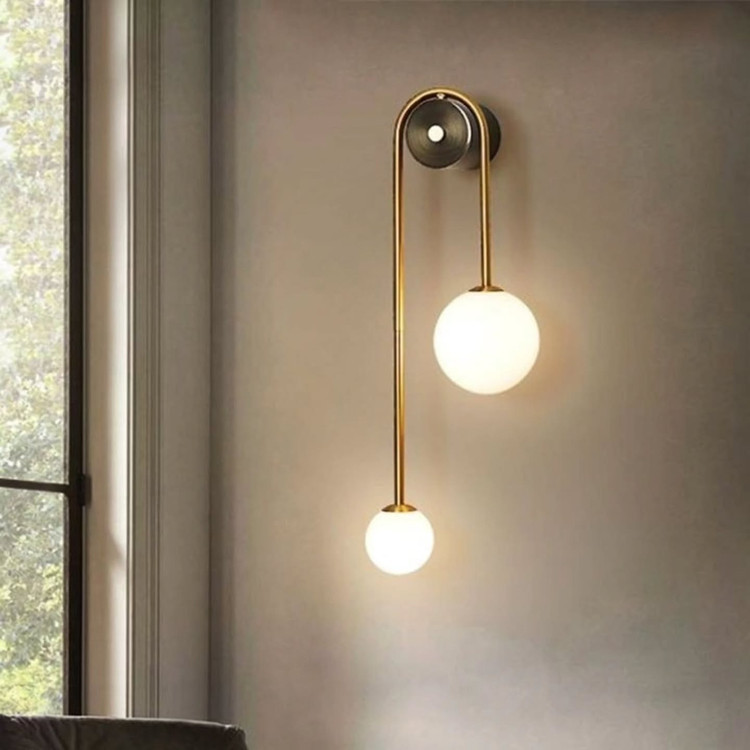 مدل D110، ترکیبی بینقص از ظرافت هنر مدرن و زیباو کلاسیک است. این محصول با طراحی آویزان و نامتقارن، که دو گوی شیشهای مات را روی یک پایه فلزی برنجی/طلایی براق معلق کرده است، بلافاصله جلوهای لوکس، آرام و صمیمی به فضای شما میبخشد. این چراغ دیواری برای ایجاد نورپردازی لایهای و تأکیدی در دکوراسیونهای شیک و امروزی یک انتخاب بیبدیل است.